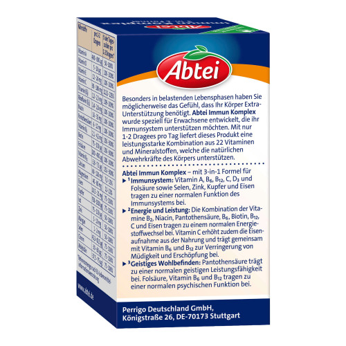 Ob in der kalten Jahreszeit, bei körperlicher Belastung oder in stressigen Phasen – der Körper braucht gezielte Unterstützung, um widerstandsfähig und leistungsfähig zu bleiben. Abtei Immun Komplex wurde speziell für Erwachsene entwickelt und kombiniert 22 essenzielle Vitamine und Mineralstoffe in einer praktischen 3-in-1-Formel.