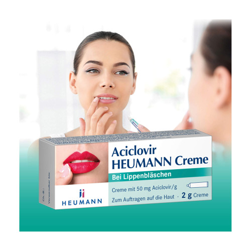 Aciclovir HEUMANN Creme wird angewendet zur lindernden Behandlung von Schmerzen und Juckreiz sowie zur Beschleunigung der Krustenbildung beim natürlichen Heilungsverlauf von akuten Episoden wiederholt auftretender Lippenbläschen (rezidivierender Herpes labialis).