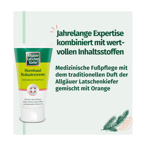 Die Hornhaut Reduziercreme Orange von Allgäuer Latschenkiefer ist eine Fußpflege, die jahrelange Expertise mit wertvollen Inhaltsstoffen kombiniert. Sie wirkt sanft, aber dennoch effektiv bei der Reduzierung unerwünschter Hornhaut. Ihre Anti-Hornhaut-Formel kombiniert Fruchtsäuren, um Hornhaut gezielt zu reduzieren und das Hautbild sichtbar zu verbessern – und das bereits innerhalb weniger Tage.