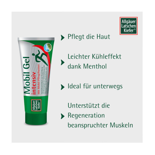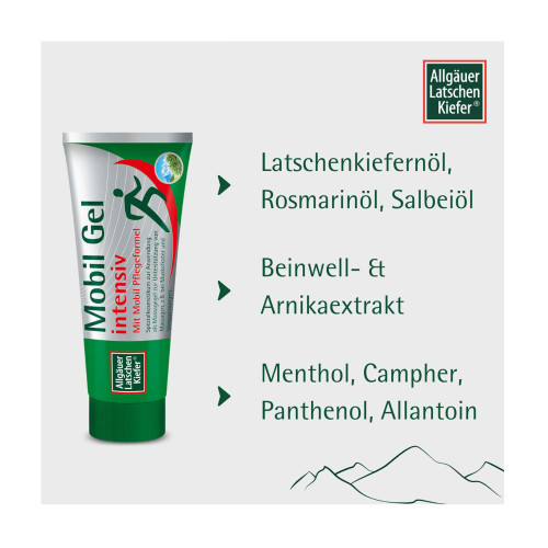 Allgäuer Latschenkiefer Mobil Gel intensiv ist ein Spezialkosmetikum zur Anwendung als Massagegel. Es eignet sich ideal zur Hautpflege und zur Unterstützung von Massagen – etwa nach dem Sport, bei Muskelkater oder Verspannungen.