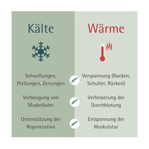- Wärmt und entspannt die beanspruchte Muskulatur.