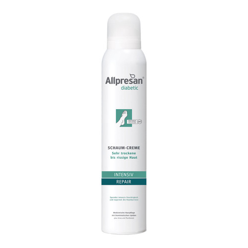 Die Allpresan diabetic Intensiv +Repair Schaum-Creme mit 8 % Urea ist speziell für die Pflege von sehr trockener und rissiger Haut bei Diabetes entwickelt worden. Diese Schaum-Creme versorgt die Haut intensiv mit Feuchtigkeit und unterstützt die Reparatur der Hautbarriere innerhalb von nur 4 Wochen.