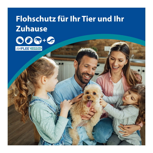 Amflee combo 268/241,2 mg Lösung zum Auftropfen für Hunde 20-40 kg. Anwendungsgebiete: Gegen Flohbefall, allein oder in Verbindung mit Zecken und/oder Haarlingsbefall.