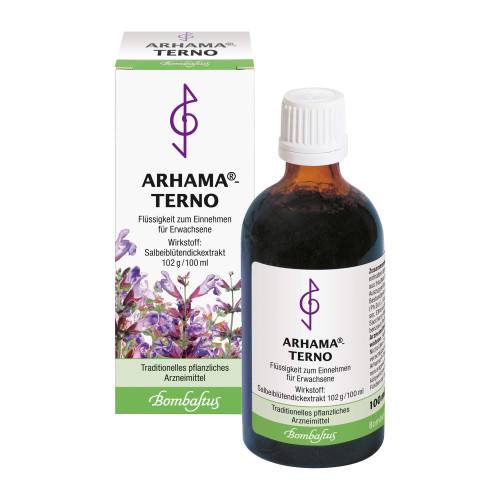 Arhama-Terno, Flüssigkeit zum Einnehmen. Wirkstoff: Salbeiblütendickextrakt. Anwendungsgebiete: Zur Besserung des Befindens bei körperlicher sowie nervöser Erschöpfung und zur Förderung des Appetits. Warnhinweise:Enthält 156 mg Alkohol (Ethanol) pro maximaler Einzeldosis von 5 ml (3,9 Vol.-%), Saccharin-Natrium, Methyl-4-hydroxybenzoat (Ph.Eur.). Packungsbeilage beachten