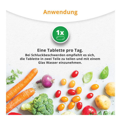 Täglich 1 Tabletten am Abend mit ausreichend Wasser einnehmen.