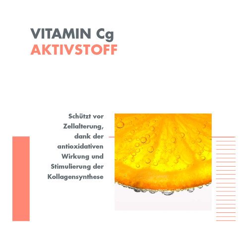 - [VITAMIN Cg*] 1.8 %: bekannt für seine antioxidative Wirkung, vergleichbar mit 20 % Vitamin C**