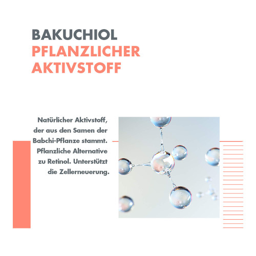 - [BAKUCHIOL] 1,5 %: pflanzliche Alternative zu Retinol, mildert Falten.