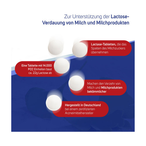 Eine Tablette Avitale Lactase 14000 FCC Tabletten spaltet ca. 22 g Laktose.