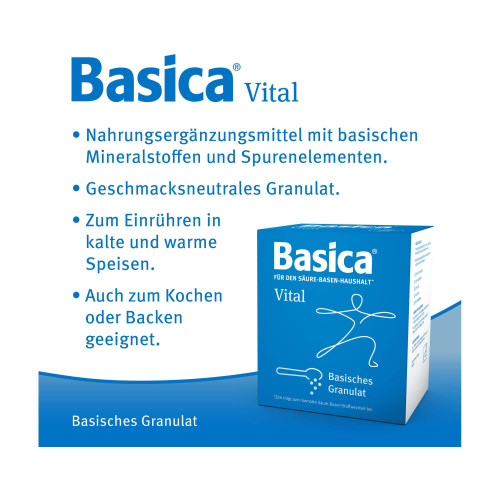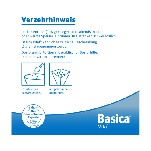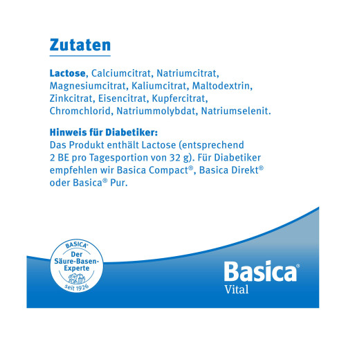 Basica® mit basischen Mineralstoffen und wertvollen Spurenelementen unterstützt das gesundheitliche Wohlbefinden und Zink den normalen Säure-Basen-Stoffwechsel.