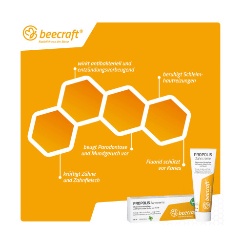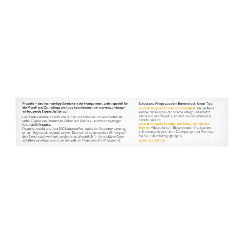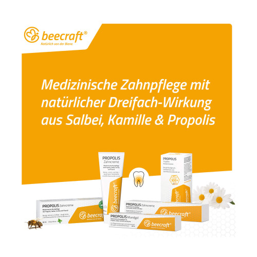 Als ideale Ergänzung zur täglichen Mundpflege empfehlen wir das beecraft Propolis Mundspül-Konzentrat mit Salbei und Kamille.