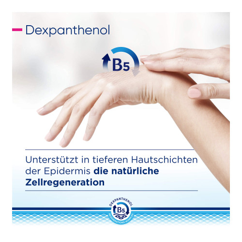 - Dexpanthenol (Provitamin B5): Unterstützt in tieferen Hautschichten der Epidermis die natürliche Zellregeneration.