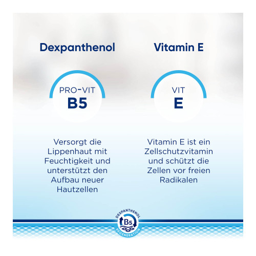 - Das in der Lippencreme enthaltene Dexpanthenol fördert den Wiederaufbau der Hautschutzbarriere und trägt ebenfalls zur Verbesserung der Hautfeuchtigkeit bei.