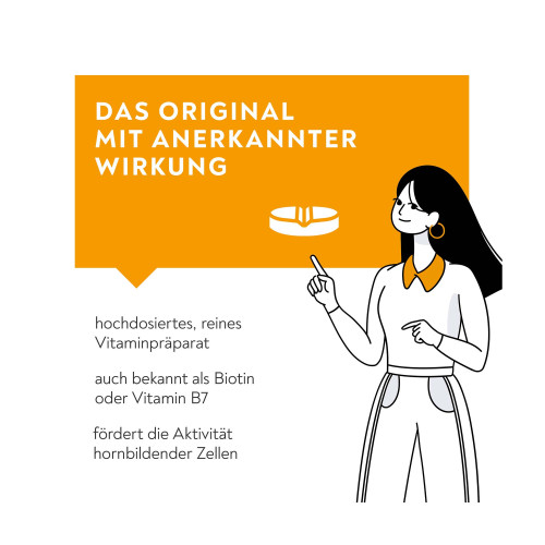 Täglich 1 Tablette einnehmen (entsprechend 2,5 mg Biotin).