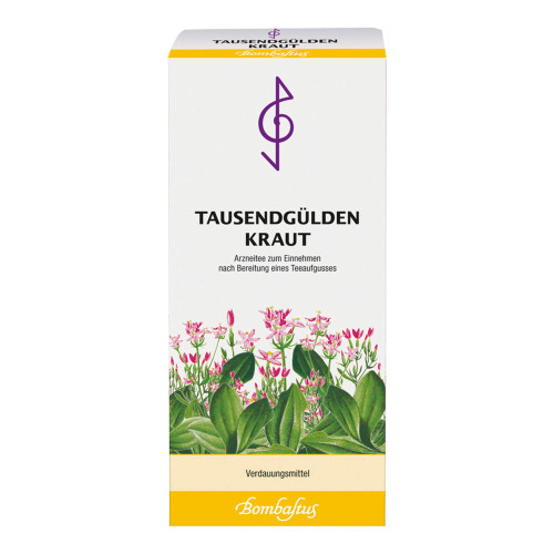 Tausendgüldenkraut, Arzneitee zum Einnehmen nach Bereitung eines Teeaufgusses. Anwendungsgebiete: Dieser Arzneitee wird bei Appetitlosigkeit, Verdauungsbeschwerden, besonders bei funktionellen Störungen des ableitenden Gallensystems angewendet.