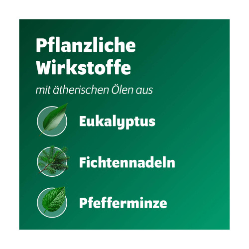 Die Wirkstoffe sind Eukalyptusöl, Fichtennadelöl und Pfefferminzöl.