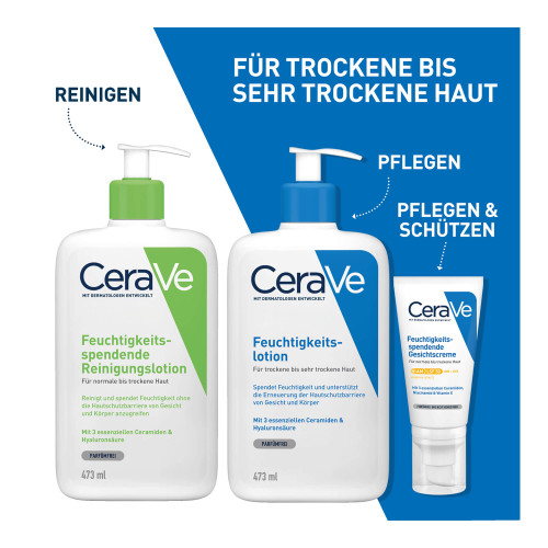Um die Pflegeroutine zu intensivieren eignet sich darüber hinaus ein CeraVe Reinigungsprodukt für trockene Haut.
