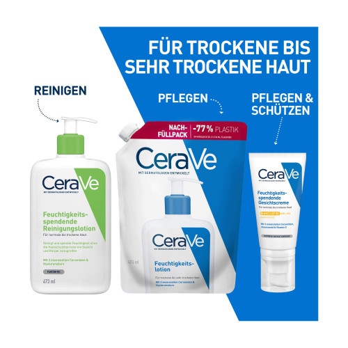 Um die Pflegeroutine zu intensivieren eignet sich darüber hinaus ein CeraVe Reinigungsprodukt für trockene Haut.
