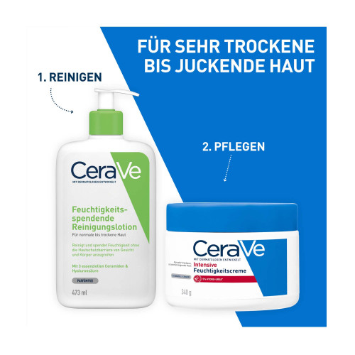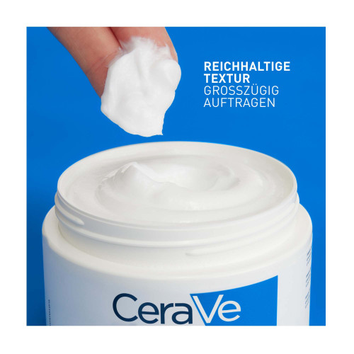 Die CeraVe Intensive Feuchtigkeitscreme täglich oder je nach Bedarf großzügig auf die trockene Haut auftragen. Anschließend sanft einmassieren und einziehen lassen.