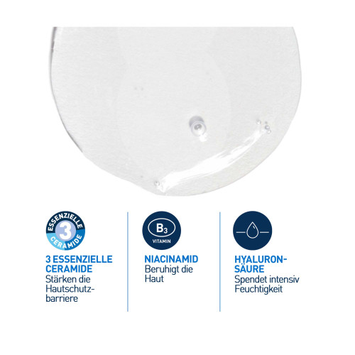 Das pflegende Reinigungsgel mit feuchtigkeitsspendendem Hyaluron, drei essenziellen Ceramiden, beruhigendem Niacinamid, Glycerin und Vitamin E reinigt effektiv und unterstützt dabei die hauteigenen Schutzmechanismen der Haut. Das sanft schäumende Reinigungsgel pflegt und hydratisiert die Haut bereits während der Reinigung, stärkt die Hautbarriere und wirkt Entzündungen entgegen. Da sie nicht komedogen und geruchsneutral ist, eignet sich das Reinigungsgel für fettige Haut auch für zu Allergien neigende Haut.