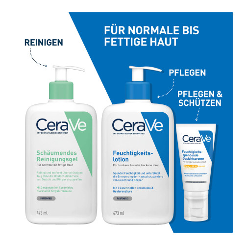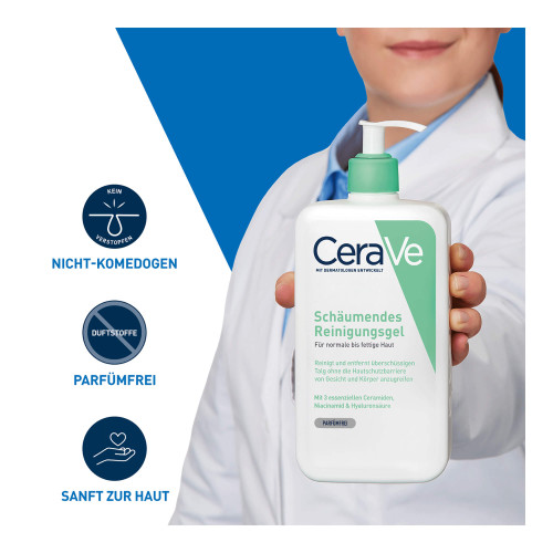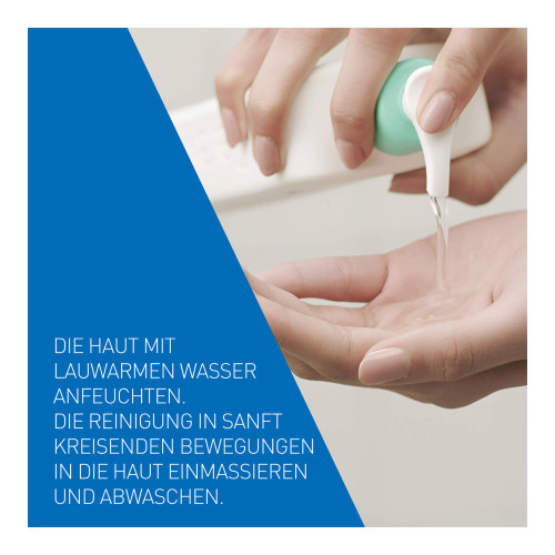 Als Teil der morgendlichen und/oder abendlichen Pflegeroutine eine kleine Menge des CeraVe Schäumendes Reinigungsgel aus dem Pumpspender entnehmen und mit etwas Wasser in den Handflächen aufschäumen. Den zarten Schaum anschließend auf die Haut auftragen und sanft einmassieren. Dank seiner besonders gut verträglichen Formel, eignet sich das Reinigungsgel für die tägliche Reinigung – auch unter der Dusche. Besonders effizient wirkt es in Kombination mit der passenden CeraVe Feuchtigkeitslotion (PZN 14017553).