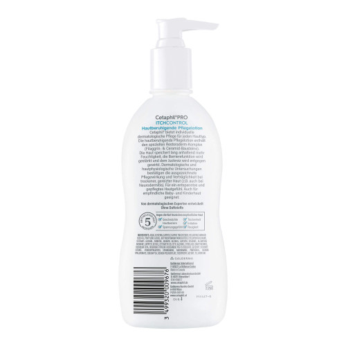 Cetaphil PRO ItchControl Hautberuhigende Pflegelotion ist eine hautberuhigende Feuchtigkeitslotion für zu Neurodermitis neigende Haut. Die hautberuhigende Pflegelotion enthält Filaggrin- und Ceramid-Bausteine, um die geschwächte Hautbarriere zu unterstützen. Die Haut speichert langanhaltend mehr Feuchtigkeit, die Barrierefunktion wird gestärkt und dem Juckreiz wird entgegengewirkt. Auch für die Pflege empfindlicher Baby- und Kinderhaut geeignet.