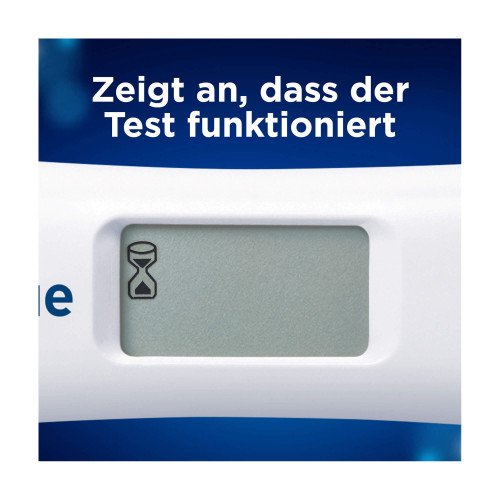 Nach der Durchführung des Clearblue Schwangerschaftstests mit Wochenbestimmung zeigt das blinkende Symbol „Warten“ an, dass der Test läuft. Wenn das Symbol „Warten" aufhört zu blinken, wird das Ergebnis angezeigt.