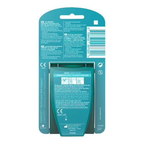6. Für idealen Behandlungserfolg Compeed® Hornhautpflaster Medium so oft wie nötig bis zum vollständigen Abheilen anwenden.