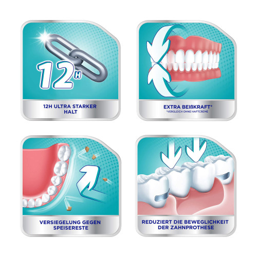 Verwenden Sie zunächst eine kleine Menge. Bei Bedarf mehr verwenden. Zu viel Haftcreme kann seitliches Ausquellen verursachen. Sollte dies vorkommen, wenden Sie beim nächsten Mal weniger an. Gegebenenfalls bedarf es mehrerer Versuche, bis Sie die richtige Menge gefunden haben. Nur einmal täglich für einen sicheren Halt anwenden. Wenn Sie mehrmals täglich Haftcreme anwenden müssen, fragen Sie Ihren Zahnarzt um Rat.