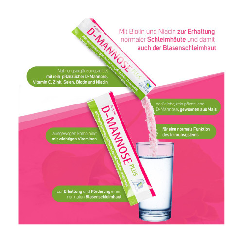 D-Mannose ist eine in der Natur vorkommende Zuckerart, die mit Traubenzucker (Glucose) verwandt ist. Sie wird vom menschlichen Körper in geringem Umfang selbst hergestellt, aber kaum verwertet. Avitale D-Mannose Plus enthält rein pflanzliche D-Mannose, gewonnen aus Mais. Sie wurde ausgewogen kombiniert mit wichtigen Vitaminen und Mineralstoffen für das Wohlbefinden von Frauen.