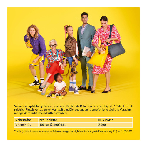 | Vitamin D3 | 100 µg (= 4000 I.E.) | 2000 |