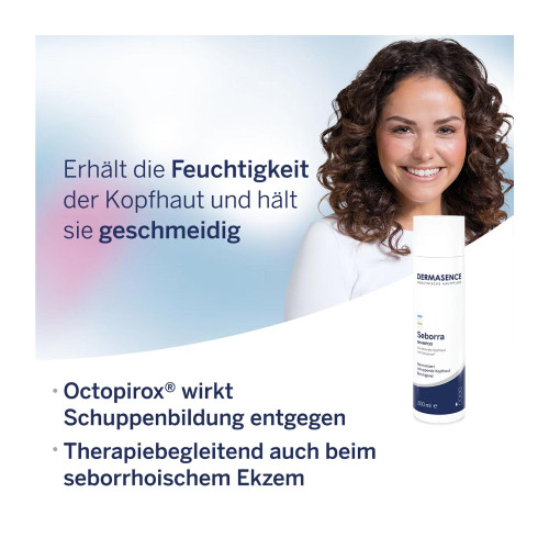 Die milde, medizinische Reinigung zur täglichen Haar- und Kopfhautpflege erhält mit Allantoin und Panthenol die Feuchtigkeit der Kopfhaut und hält sie geschmeidig. Wirkt mit Octopirox® der Schuppenbildung entgegen und kann bei seborrhoischem Ekzem therapiebegleitend angewendet werden. Wirkt zusätzlich kühlend mit Menthol.