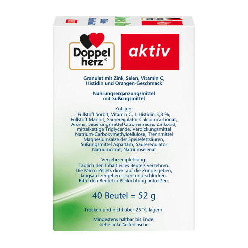 Doppelherz Abwehr aktiv DIRECT versorgt Sie mit den Spurenelementen Zink und Selen sowie dem Vitamin C für eine normale Funktion des Immunsystems. Zusätzlich ist der Eiweißbaustein Histidin enthalten.