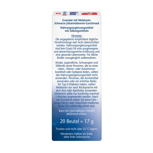 Melatonin sollte nur kurzfristig maximal 3 Wochen angewendet werden. Nach der Einnahme sollten Sie keine Fahrzeuge führen oder Maschinen bedienen, bevor Sie vollständig erholt sind.