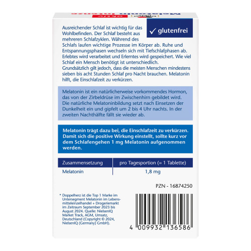 Melatonin trägt dazu bei, die Einschlafzeit zu verkürzen. Damit sich die positive Wirkung einstellt, sollte kurz vor dem Schlafengehen 1 mg Melatonin aufgenommen werden.