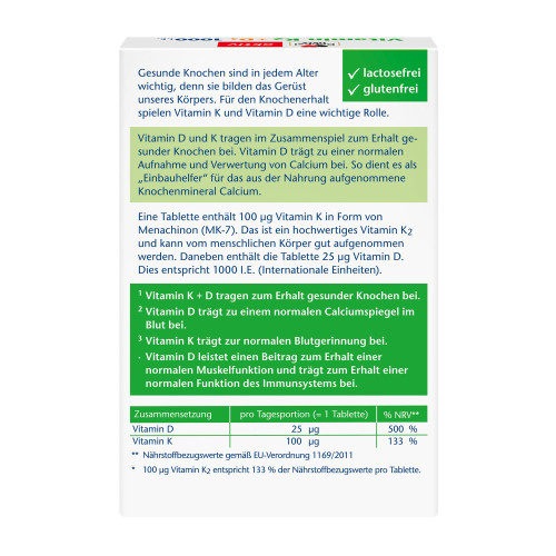 - 1 Vitamin K + D tragen zum Erhalt gesunder Knochen bei.