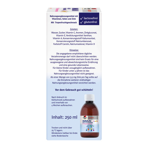 Das flüssige Doppelherz system IMMUN family liefert ausgewählte Spurenelemente und Vitamine für das Immunsystem und den Zellschutz – und schmeckt so sonnig nach Tropenfrüchten, dass gleich wieder die Sonne scheint!