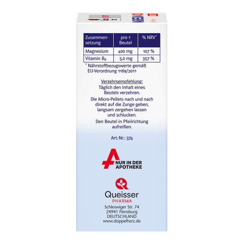 Die feinen Granulatperlen können jederzeit und an jedem Ort ganz ohne Flüssigkeit eingenommen werden. Diese Darreichungsform ist daher besonders gut geeignet, um den Körper schnell und direkt mit Magnesium und Vitamin B6 zu versorgen – ideal für unterwegs oder bei Einnahmeschwierigkeiten von Tabletten.