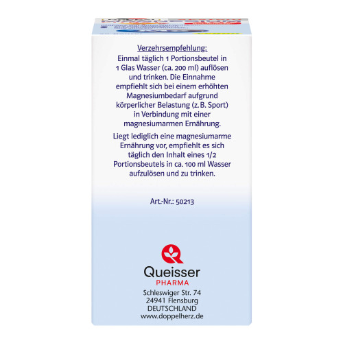 Die Einnahme empfiehlt sich bei einem erhöhten Magnesiumbedarf aufgrund körperlicher Belastung (z. B. Sport) in Verbindung mit einer magnesiumarmen Ernährung. Liegt lediglich eine magnesiumarme Ernährung vor, empfiehlt es sich täglich den Inhalt eines 1/2 Portionsbeutels in ca. 100 ml Wasser aufzulösen und zu trinken.