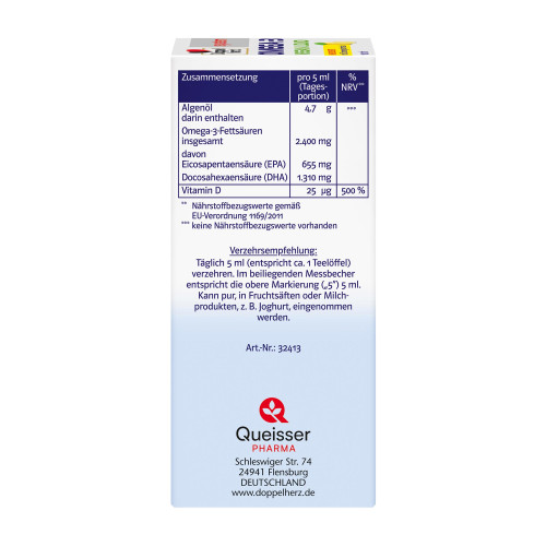 Täglich 5 ml (entspricht ca. 1 Teelöffel) verzehren. Im beiliegenden Messbecher entspricht die obere Markierung („5“) 5 ml. Kann pur, in Fruchtsäften oder Milchprodukten, z. B. Joghurt, eingenommen werden.