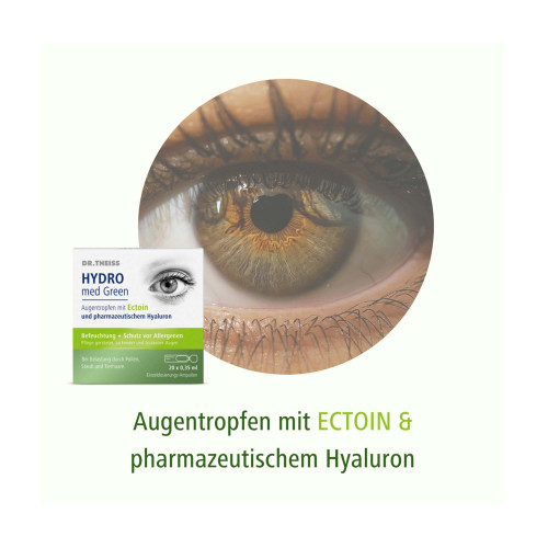 Die Hydro med Green Augentropfen mit Ectoin und pharmazeutischem Hyaluron sind 3-5x täglich anwendbar.