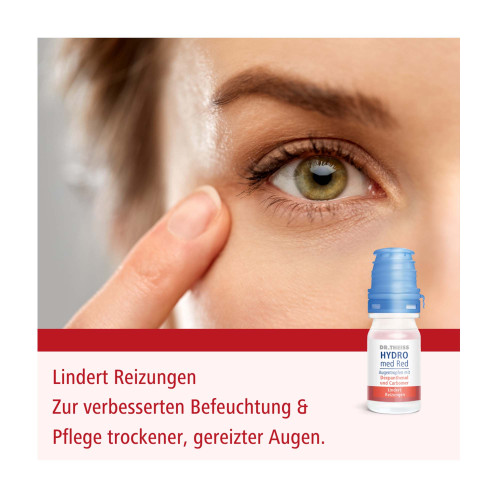 Augenreizungen oder gerötete, trockene Augen können häufig durch äußere Reize, Reibungen durch Kontaktlinsen oder sonstige unangenehme strapazierende Effekte am Auge entstehen, wie zum Beispiel Bildschirmarbeit oder Heizungsluft. Die Hydro med Red Augentropfen von Dr. Theiss enthalten Dexpanthenol und Carbomer und können solche Reizungen am Auge lindern. Sie befeuchten und pflegen trockene, gerötete Augen.