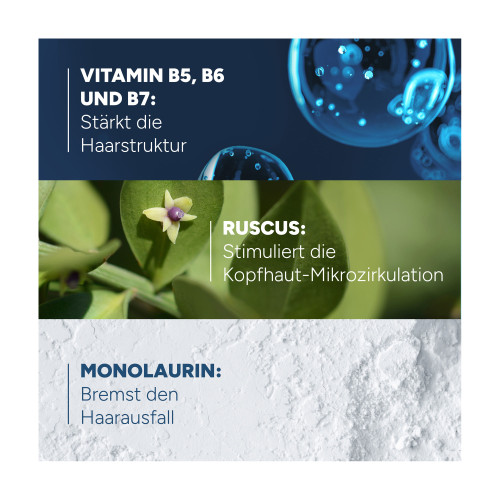 - Verlangsamt den Haarausfall (-88% Haarausfall nach 3 Wochen*).
