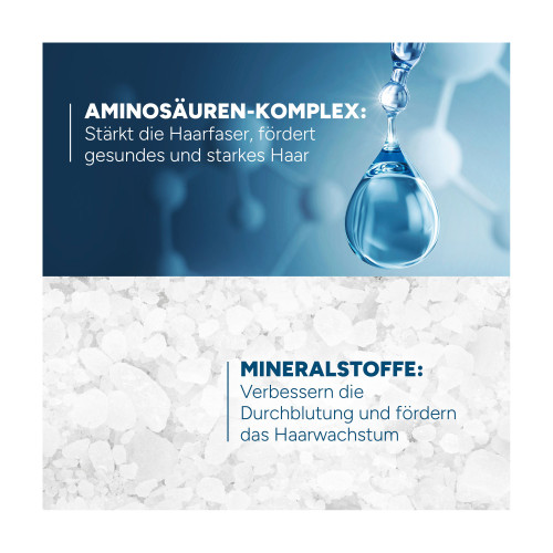 Die einzigartige Formulierung von ANAPHASE Shampoo bei temporärem Haarausfall enthält eine Reihe wirksamer Aktivstoffe: Mineralstoffe helfen bei der Aktivierung der Anagenphase (Wachstumsphase), Adenosin regt das Haarwachstum an und Aminosäuren-Komplexe stärken und schützen die Haarfaser.