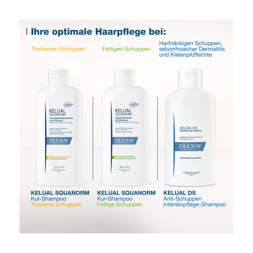 Das DUCRAY KELUAL SQUANORM Kopfhaut Tonikum ist eine Zusatzpflege bei jeder Art von Schuppen. Dieses dermatologische Kopfhaut-Tonikum mit doppelter Wirkung gegen Schuppen und Juckreiz reduziert fettige oder trockene Schuppen bereits nach der 1. Anwendung* und beruhigt juckende Kopfhaut langanhaltend.