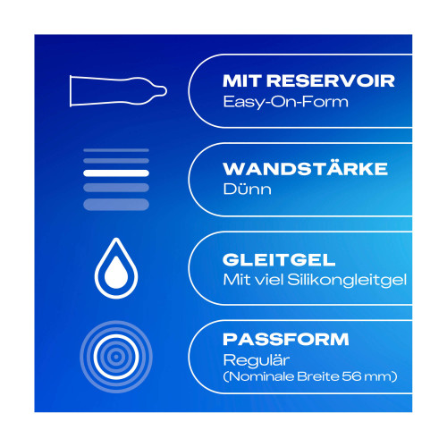 Denke daran, dass keine Verhütungsmethode zu 100 % vor Schwangerschaft, HIV oder sexuell übertragbaren Krankheiten schützt. Es ist gut, Bescheid zu wissen – deshalb beachte bitte die Informationen auf der Innenseite der Packung, insbesondere, wenn du Kondome für Anal- oder Oralsex benutzt.
