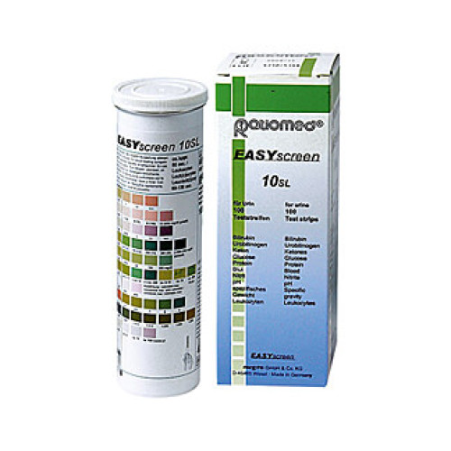 Visuell auswertbare Harnteststreifen zum Schnellnachweis von Glucose, Keton, Protein, pH-Wert, Blut, Nitrit, Bilirubin, Urobilinogen, spez. Gewicht und Leukozyten. Die Vergleichsskalen sind im aufwendigen Lackdruck-Verfahren gefertigt, dadurch höchste Farbbeständigkeit und Vergleichbarkeit. - eindeutige Zuordnung der Glucosekonzentration im klinischen Entscheidungsbereich bei 50 mg/dl durch Farbwechsel von gelb nach grün - optimale Festlegung der Bereichsgrenzen der Glucosekonzentrationen nach klinischen Gesichtspunkten von gelb über grün nach blau - handliches Teststreifenformat mit angemessen langer Griffzone zur Erhöhung der Anwenderhygiene