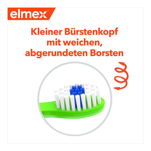 - Weiche, abgerundete Borsten reinigen die Milchzähne besonders gründlich und schonend.
