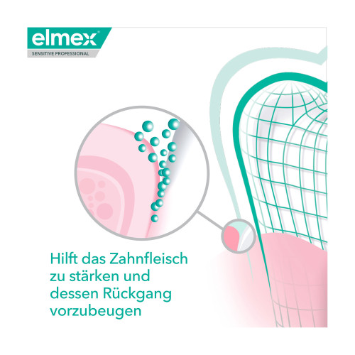 elmex® SENSITIVE PROFESSIONAL Repair & Prevent Zahnpasta mit PRO-ARGIN Technologie und Zink. Die einzigartige PRO-ARGIN Technologie repariert sensible Zahnbereiche und bietet sofortige* und lang anhaltende Schmerzlinderung. Zink hilft, das Zahnfleisch zu stärken und dessen Rückgang vorzubeugen – eine der Hauptursachen von Schmerzempfindlichkeit.