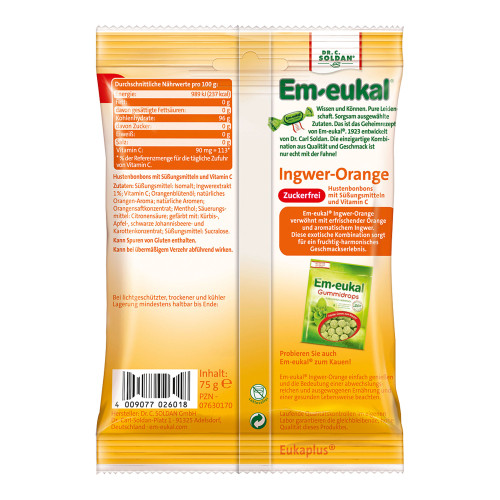 Em-eukal Bonbons Ingwer-Orange zuckerfrei 75 g