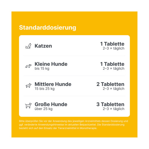 Mittelerer Hund (15-25 kg): 2-3 mal täglich je 2 Tabletten